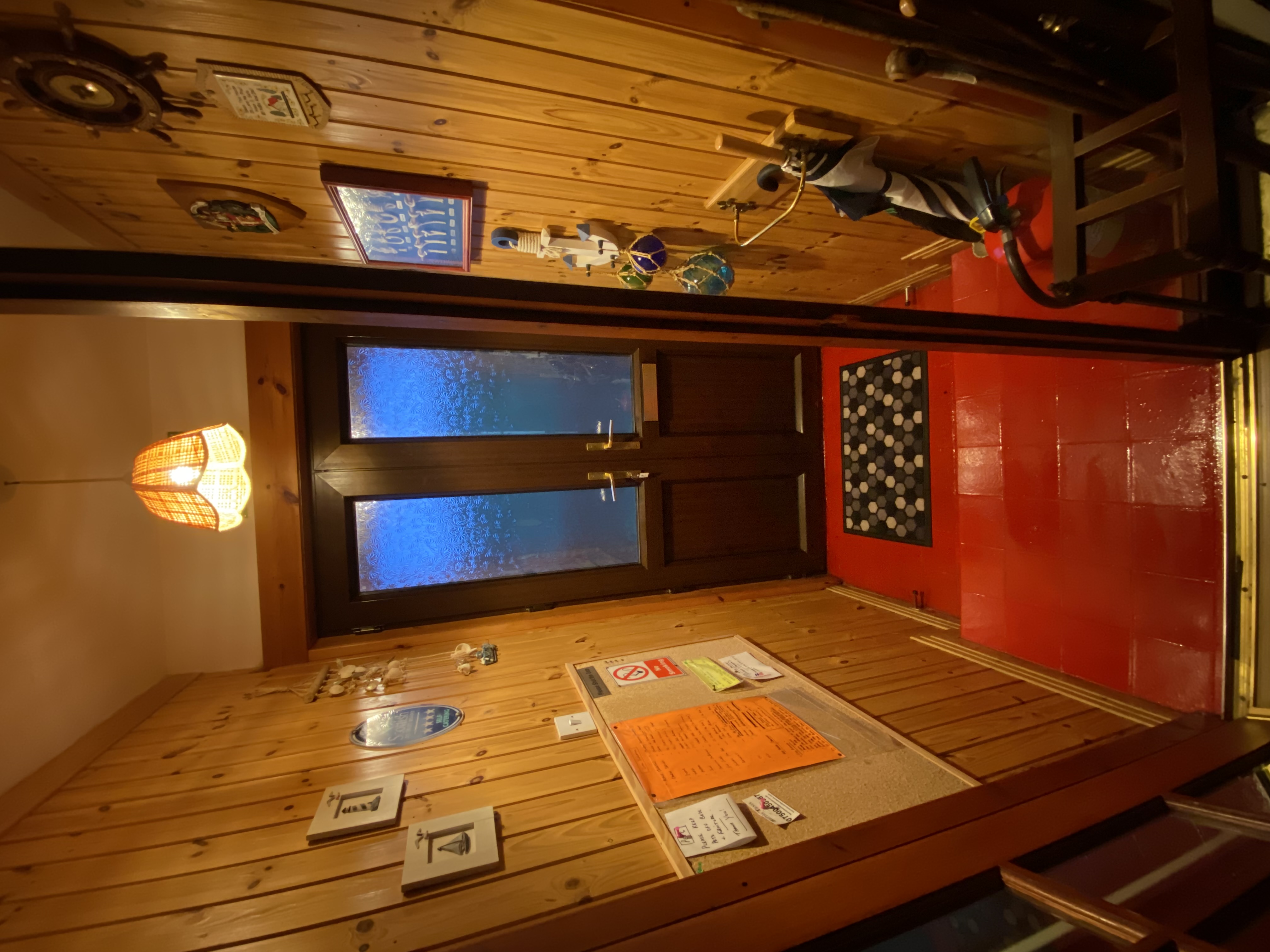 Front porch has a nautical wall theme.