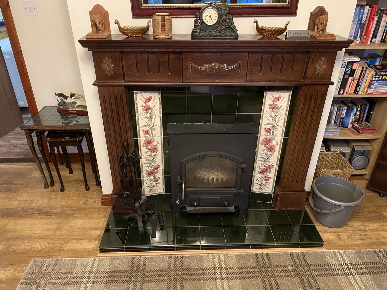 Antique fireplace with newly fitted log stove.