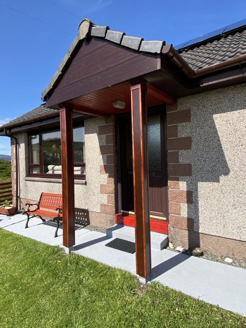 Tiled front porch at HH which has upvc windows and doors.