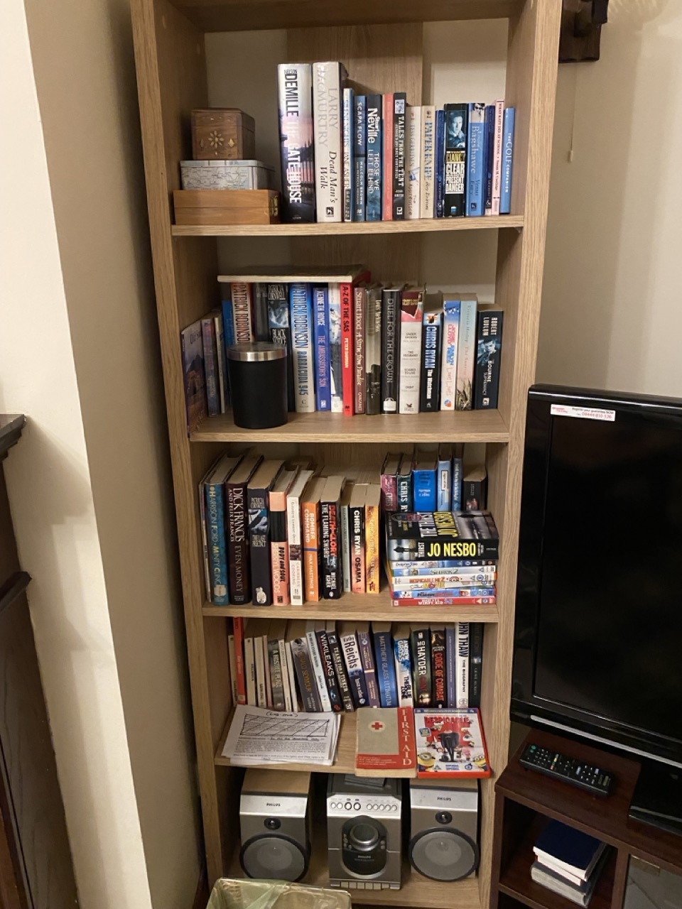 Well stocked bookcase in Hamarsay House.